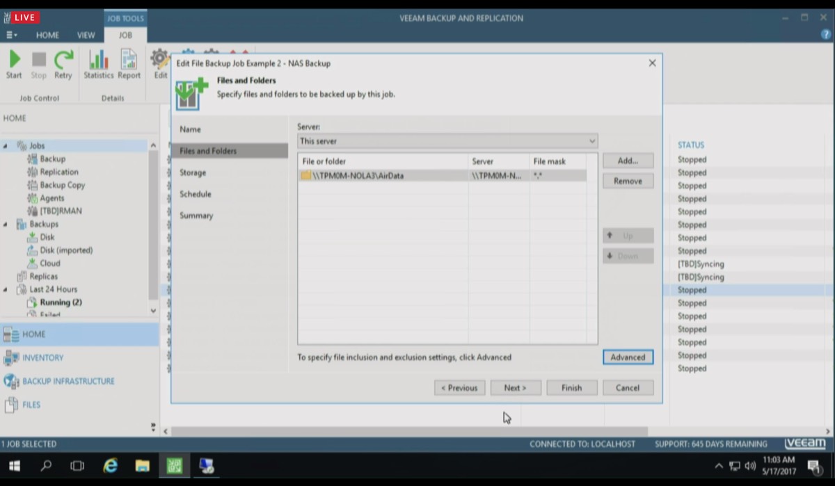 - NAS Support. Veeam will now be able to backup file shares directly, with granular restores from various file versions. This is helpful for customers who run dedicated NAS boxes of have specific recovery requirements for file shares. I see this feature also being very helpful for file server migrations, as you can restore the entire share to another host if needed.
