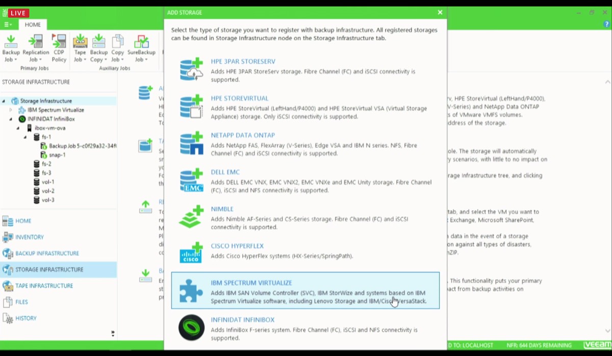 - Universal API for storage integration. Veeam has had tight storage integration with vendors like HPE, EMC, NetApp, and Nimble. In Version 10, they are publishing a public API that any storage vendor can integrate with. This will allow Veeam to have access to SAN based snapshots, and tighter integrations for faster data transfer.