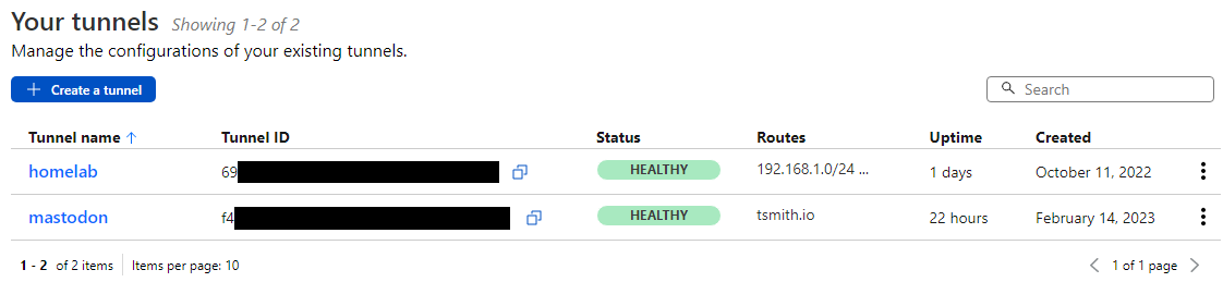 Now, I could finally access my Mastodon server using it’s hostname tsmith.io from anyway, while the server sat safely in my homelab with no ports exposed and no static IP required from my ISP.