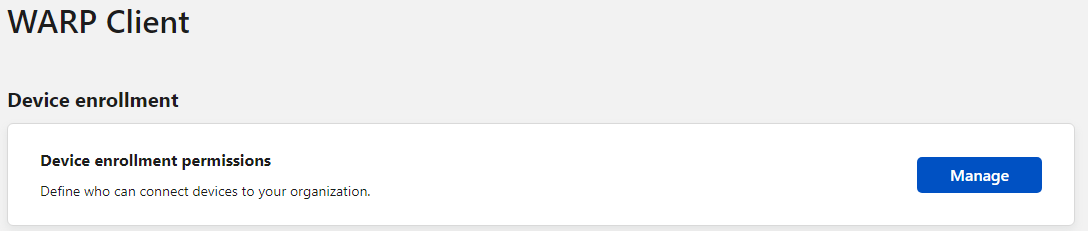 Then, go to Settings. We will start by configuring the device enrollment access, so we restrict who can access what via the Warp client.